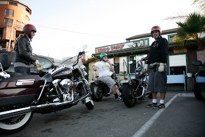 Vi ville göra det på riktigt, enligt oss. Åka på den typen av hoj vi var vana vid. På egna, stelkonverterade hojar tvärs över Amerika. Det enklaste sättet är ju inte alltid rätt sätt att genomföra saker på! Mc-folk vi träffade utmed vägen undrade hur fan vi kunde göra resan på en motorcykel utan bakfjädring, med en 15 mm tjock sadel. Vi var tvugna att låta dem provsitta för att de skulle förstå att motorcykeln är bättre att köra så här än en en orginalhoj. På de här hojarna sitter man nämligen i motorcykeln mer än på den.Vilket, enligt oss igen, ger en behaglig åkupplevlse på alla plan. :)